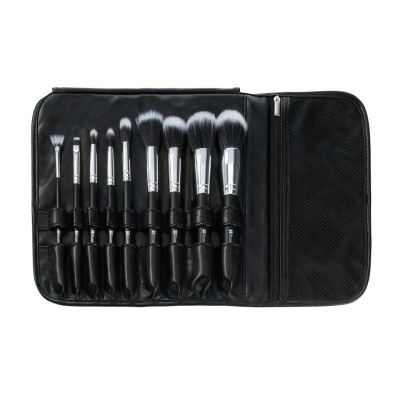 Achieve the ultimate airbrushed finish effortlessly with our versatile Dual Fiber 9 Piece Brush Set. The convenient collection of synthetic face and eye brushes can be used with liquids, creams and powders, making it a cinch to buff, blend and bronze like a pro. Brushes come in a black, quilted, roll-up case with a zipper compartment for additional beauty essentials.