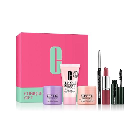 CLINIQUE 6pc Gift Set This Gift Includes: Take The Day Off™ Cleansing Balm, .50oz / 15ml All About Clean™ Rinse-Off Foaming Cleanser, 1.0oz / 30ml Moisture Surge™ 72-Hour Auto-Replenishing Hydrator,... Read more