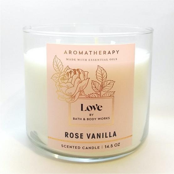 BATH AND BODY WORKS – Love Rose Vanilla 3 Wick Candle